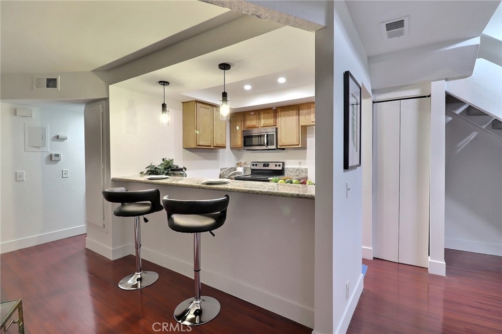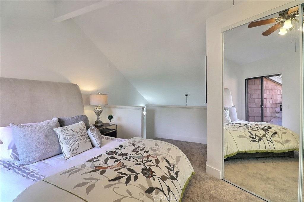Welcome to Your Peaceful Retreat in Fullerton! Discover this beautifully updated one-bedroom loft-style condo in the highly desirable Quail Ridge community on Pine Creek Circle. With soaring ceilings and abundant natural light, this upper-level home feels bright, open, and airy from the moment you walk in. Recent upgrades include fresh interior paint, new carpet, and modern bathroom vanities with mirrors. The spacious living area features sleek laminate flooring and opens to a private balcony with a lighted storage closet—perfect for relaxing or entertaining. Upstairs, the loft bedroom offers comfort and privacy, complete with its own balcony, creating the ideal spot to unwind after a long day. Additional highlights include a convenient half bath on the main level, in-unit laundry, and covered carport parking. The Quail Ridge community offers a resort-like atmosphere with tranquil streams, lush landscaping, a sparkling pool, and a soothing spa. Centrally located just minutes from Cal State Fullerton, the 57 Freeway, Craig Regional Park, and Brea Mall, you’ll enjoy easy access to top dining, shopping, and entertainment. Whether you’re a first-time homebuyer, downsizer, or investor, this condo is a hidden gem you won’t want to miss!