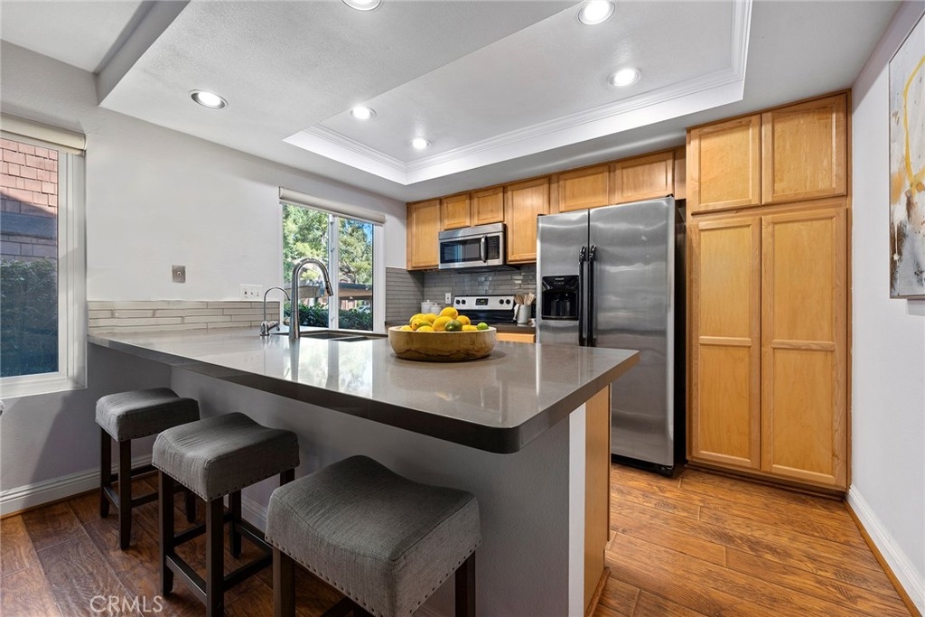 Welcome to your personal oasis in the heart of the renowned Quail Ridge community—celebrated for its unique resort-style ambiance, surrounded by mature trees, tranquil streams, and cascading waterfalls. This ground-level, single-story gem offers seamless accessibility with NO steps, making it perfect for all ages. Prime Location Across from Craig Park. Situated directly across from Craig Park, you'll have endless opportunities for outdoor activities—play, run, or enjoy quality time with friends and family. Plus, you're just moments away from Downtown Brea, Downtown Fullerton, CSUF, premier shopping, entertainment, and have easy access to the 57 FWY. Stunning Interior Features Spacious Living Room: Cozy up by the fireplace or admire the serene views through sliding doors that lead to a large patio with a storage room, all overlooking lush trees, streams, and waterfalls. Elegant Master Suite opens to a private patio adorned with artificial grass and pavers, offering a mountain-retreat vibe where you can unwind and enjoy leisure time. Modern Upgrades: Features all double-pane windows and sliding doors, scraped and textured ceilings with recessed lighting, and ceiling fans in the dining room and both bedrooms. Gourmet Kitchen equipped with a pantry featuring roll-out shelves and tile flooring, the kitchen seamlessly opens to the dining room with laminate flooring and a ceiling fan. Luxurious Bathrooms:Both bathrooms have been meticulously remodeled with quartz and marble countertops and elegant tile floors. The master bathroom boasts a convenient walk-in shower for a spa-like experience. Energy-Efficient Comfort: Stay comfortable year-round with the state-of-the-art HVAC unit, completely replaced in 2019 with the most energy-efficient model on the market. Enjoy optimal climate control while saving on energy costs. Resort-Style Amenities: As part of the community, indulge in exceptional amenities: Sparkling Swimming pool and spa; Modern clubhouse for gatherings; Two tennis courts for recreation; Comprehensive exterior maintenance. Convenience and Accessibility: This unit comes with two assigned carports and is MOVE-IN READY! With no steps to navigate, it offers effortless living in a picturesque setting. Don't Miss This Jewel in Paradise:Experience the perfect blend of luxury, comfort, and convenience in a home that feels like a permanent vacation. This is more than just a home—it's a lifestyle awaiting you. See it yourself and make it yours today!