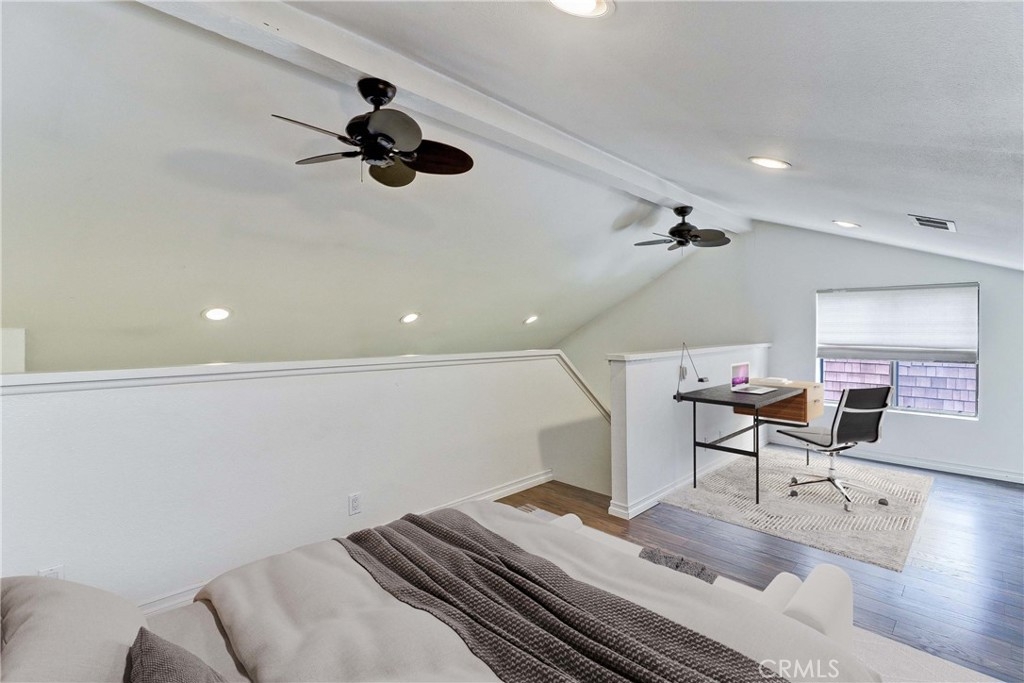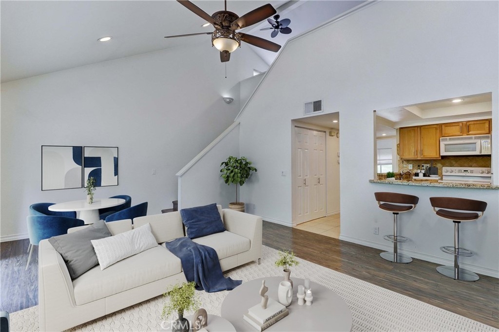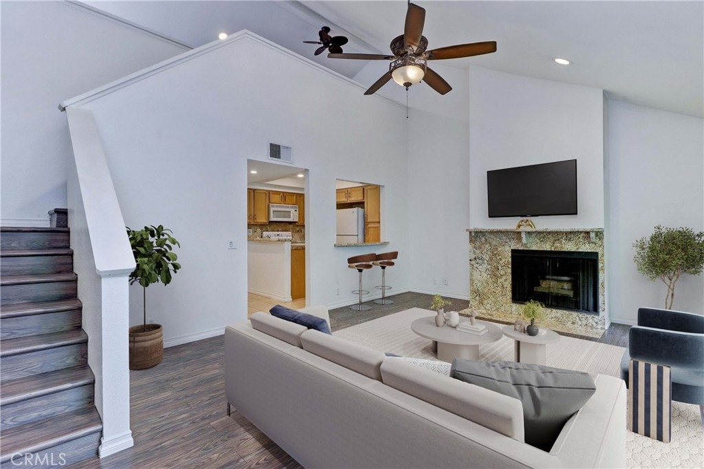 Discover the perfect blend of comfort and convenience in this beautifully updated 1-bedroom + loft condo, nestled in the tranquil, tree-lined community of Quail Ridge. Step inside to an inviting open floor plan featuring a spacious living room with soaring vaulted ceilings, a cozy fireplace, and abundant natural light. The updated kitchen and bathroom add modern flair, while the indoor laundry adds everyday ease. The versatile loft offers the ideal space for a home office, guest room, or creative studio. Step out onto the private patio and unwind to the peaceful sound of flowing water and lush greenery. Located near Cal State Fullerton and surrounded by top-tier shopping, dining, and entertainment, this home is both a quiet escape and a gateway to vibrant city life. Enjoy resort-style amenities including a sparkling pool, relaxing jacuzzi, tennis courts, and a stylish clubhouse perfect for hosting gatherings. This is more than just a home—it’s a lifestyle. Come experience the peaceful charm and modern comfort of Quail Ridge living.