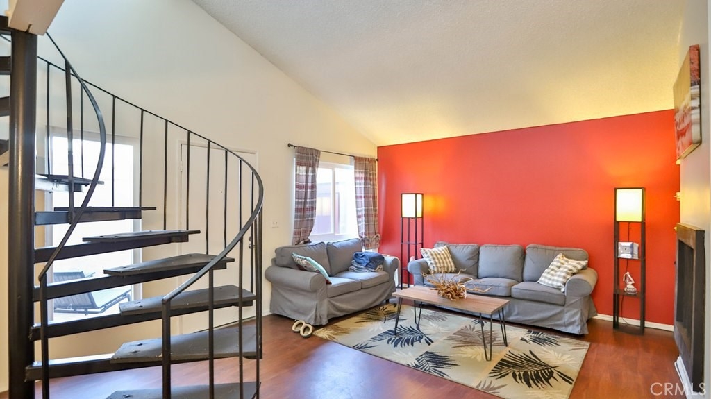 WILL NOT LAST LONG! A great opportunity to own a 2-story-condo in Fullerton. Located in a secure gated community, this well maintained charming 2 bed 2 bath unit contains a beautiful spiral staircase leading up to a lofted bedroom with walk in closet. The sloping high ceiling gives the living area a bright and airy feeling along with a cozy fireplace. The downstairs master bedroom includes a sliding glass door out to your own private patio, which provides a fun space for BBQs and lounging. This unit comes with a detached private 2 car garage. All new windows were installed in 2018, and the property has been upgraded with energy saving smart WiFi Nest thermostat. Close to Cal State Fullerton, the 57 freeway, and nearby shopping/dining. Monthly HOA fee includes water, trash, and gas as well as laundry rooms, gym, clubhouse, pool, and spa. A MUST SEE!!!