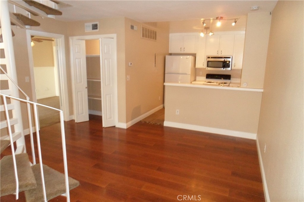 Fabulous 2BR 2BA two story end-unit townhome located in the gated community "The Arbors." Private locked entry patio with secure storage. Upgraded Halogen lighting in kitchen with ceramic tile floor, built-in microwave oven, and breakfast bar. Living room features beautiful cherry wood laminate flooring, vaulted ceilings, gas log fireplace, and elegant spiral staircase to upstairs loft bedroom. Downstairs bedroom features slider door access to private enclosed patio, large closet, and private bathroom. Second story loft bedroom also features private bathroom, walk-in closet, and high ceilings. Both bedrooms have ceiling fans. New central A/C & heat July of 2020. Two-car detached garage (#54) with opener. Community laundry conveniently located on-site. HOA dues pay your gas, water, and trash services. HOA amenities feature resort-like, pool, spa, gym, clubhouse, and meeting area. Property is close enough to bike to Cal State Fullerton, and Fullerton (JR.) College is just minutes away by car. Shopping & numerous dining options are close by.