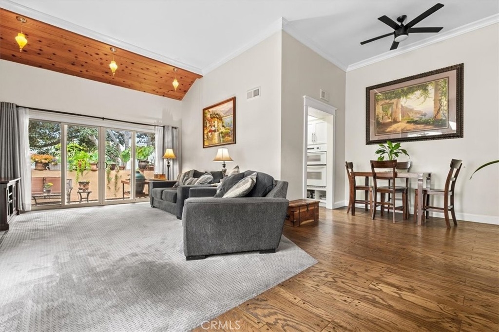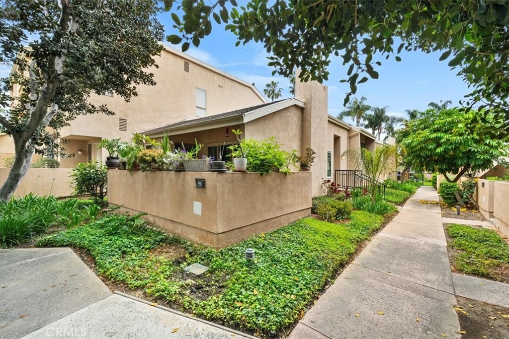 Welcome to the serene enclave of Water Gardens, where this inviting townhome awaits its new owners. Boasting 2 bedrooms and 2 baths, this residence exudes comfort and style. Step into the spacious family room, highlighted by a cozy fireplace, high ceilings, and custom lighting fixtures, creating a warm and inviting atmosphere for gatherings with loved ones. Transition seamlessly to the outdoor oasis of the enclosed patio, accessible from both the kitchen and living room, offering a delightful space for relaxation or outdoor dining. The attention to detail is evident throughout, with dual-paned windows ensuring both tranquility and energy efficiency. The contemporary kitchen is a chef's delight, featuring recessed lighting, modern appliances, and a convenient bonus desk area bathed in natural light. Retreat to the bedrooms with vaulted ceilings, providing a peaceful sanctuary for rest and rejuvenation. Both updated bathrooms offer a bath/shower combo, complemented by stylish fixtures and finishes. Outside, the community amenities include lush landscaping, sparkling pool, providing a resort-like ambiance for residents to enjoy. Conveniently located near major highways, shopping centers, and the California State University of Fullerton campus, this townhome offers the perfect blend of comfort, convenience, and community. Welcome home to Water Gardens!