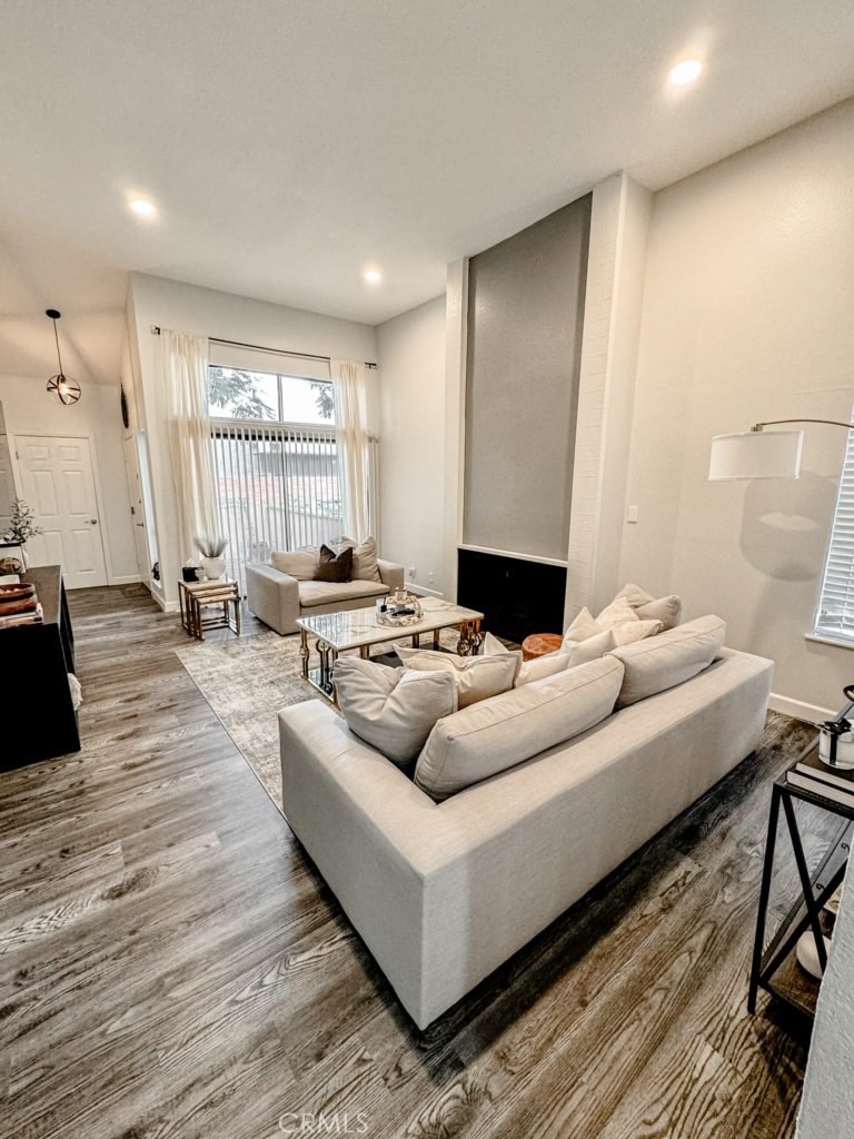 Welcome Home to this beautifully remodeled and updated 3 Bedroom, 2 Bathroom, Condo in the highly desirable city of Fullerton. This North/South facing Condo is a Corner Unit with neighbors only to one side, Situated within the beautiful and peaceful Water Gardens Community, which features 3 Swimming pools, 3 Spas, and park-like grounds. Step inside from the street level front door, or the attached downstairs 2-car garage, and you'll be greeted with a light and bright, beautifully finished living room/dining room area with vaulted ceilings and new flooring. Attached to this area is the completely new All White Kitchen with All New Cabinets and Appliances and Quartz Countertops. There is also an intimate and spacious Breakfast Nook adjoining this Modern Kitchen. 6 Steps up from the main living area leads you to the shared Full Bathroom and 2 Full Bedrooms. At the end of this hallway is the Beautiful Main Bedroom with Vaulted Ceilings, private Full Bathroom, and a very spacious, enclosed, outdoor sitting area/balcony, which also connects to the 2nd Bedroom. The downstairs, attached, 2-car garage, with direct access, features new epoxy flooring, and a large storage area/laundry room. This Beautiful, Large, Open, Bright, and Airy Condo is conveniently located close to Cal State Fullerton, multiple major Freeways, and countless dining, shopping, and entertaining destinations.