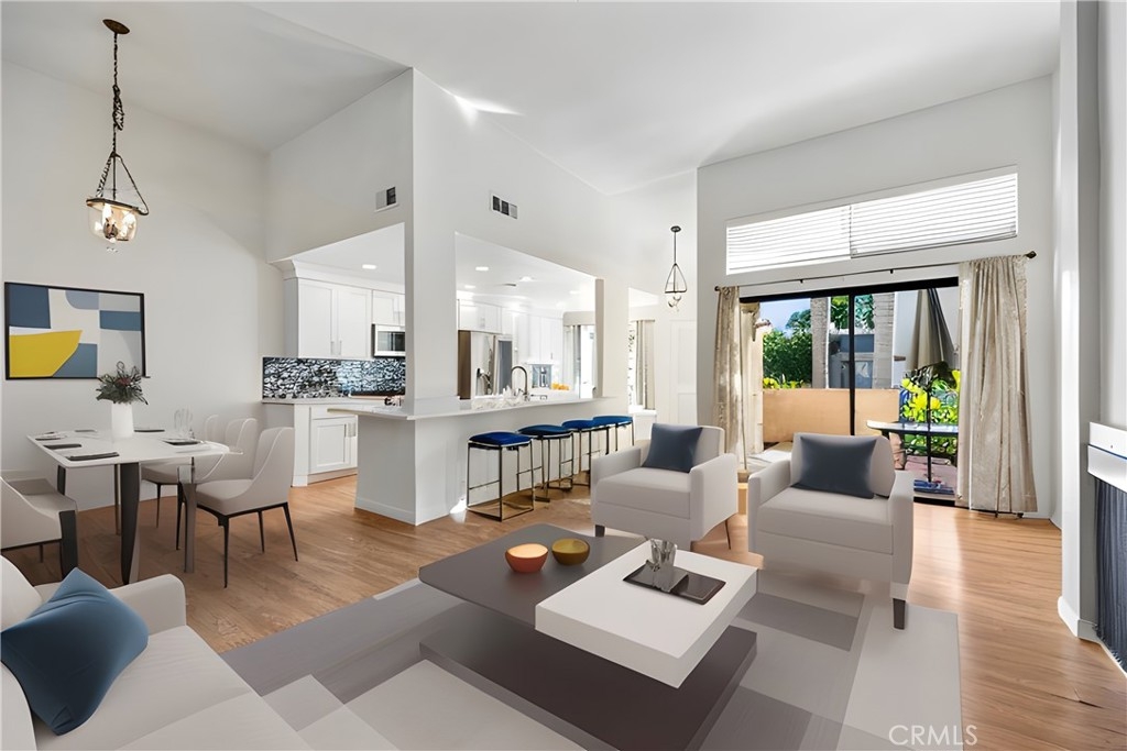 Welcome to this home in the desirable Water Gardens community. This unit overlooks one of the complex’s spectacular water features just waiting for you to sit in your enclosed patio and relax to the peaceful sounds. As you enter the living room, the vaulted ceilings and fireplace give this multi-level townhome a very open feel. The kitchen has been completely remodeled with new cabinets, Quartz countertops, wine rack, stainless appliances, and recessed lighting. The kitchen flows into the living room, entertain at the kitchen bar seating or enjoy the window seat nook with bench seating. Head upstairs to the spacious primary bedroom that has a sliding glass door to a private balcony. The 2nd bedroom and loft with a closet that can be the 3rd bedroom or office are near to a full bath. Adjacent to the garage is a music studio/storage with A/C. Home has direct access from the downstairs 2-car garage. The complex has 3 pools and 3 spas. As well as being near CSUF, the surrounding area provides shopping, entertainment, and convenient freeway access.
