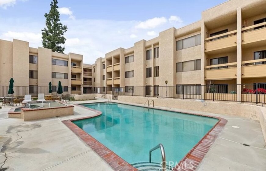 Studio Condo facing Ford Ave in the Fullerton Fountains. Great complex in a great neighborhood. 55+ Community. Balcony faces east which makes for cool afternoons. Very walkable neighborhood. Off street parking in gated parking lot.