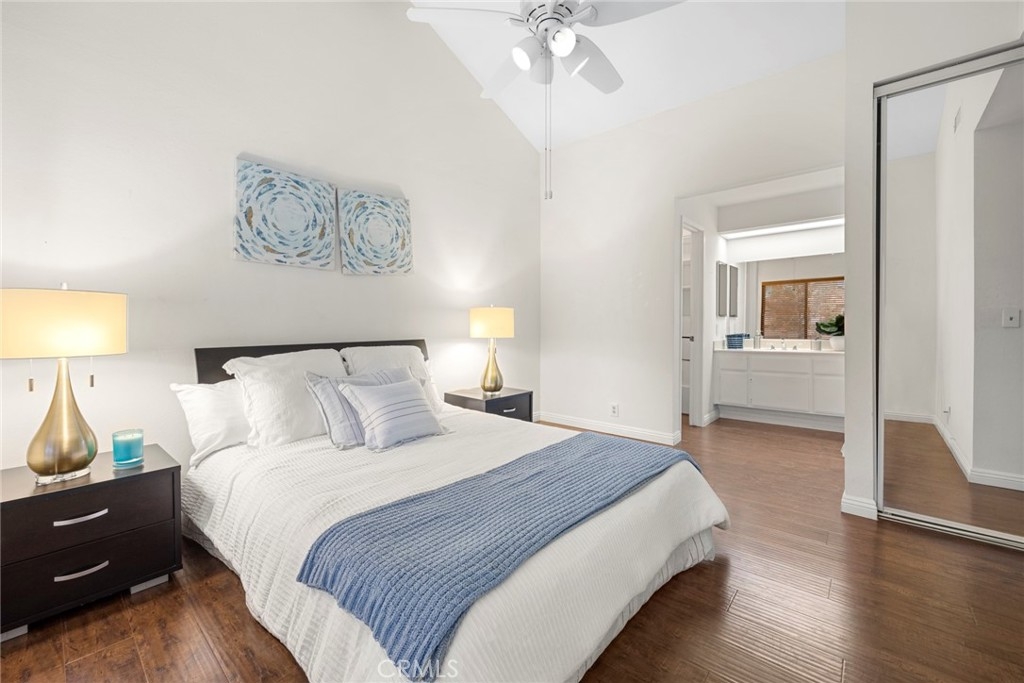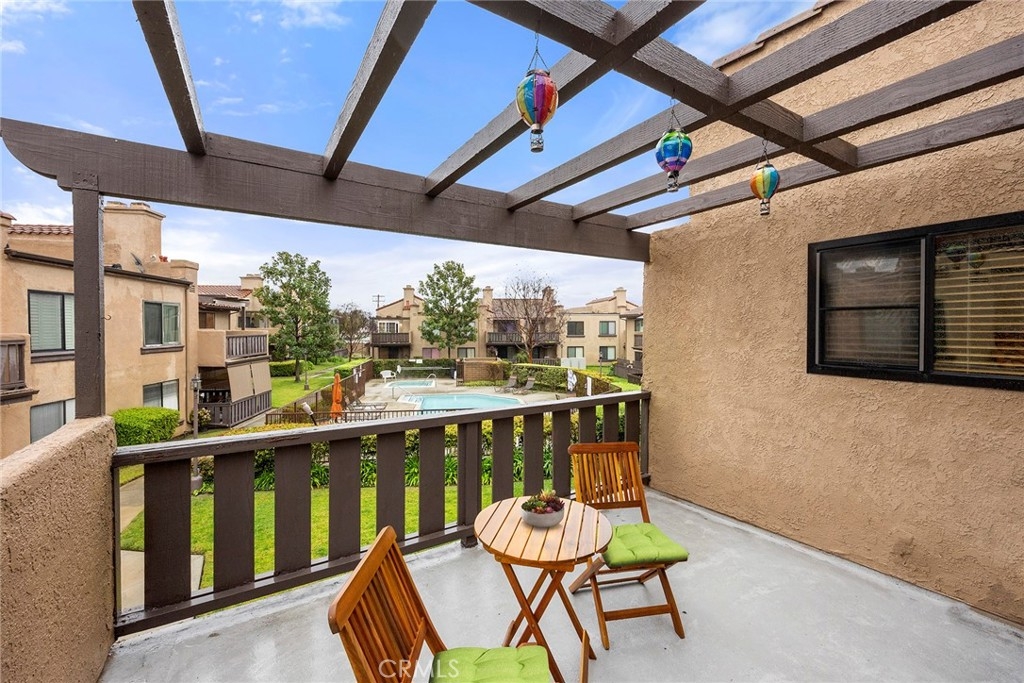 Whether you are a first-time homebuyer or it’s time to “right size”, this upper level, single story end unit is the perfect place to call home. Located in the quiet and desirable community of Via Valencia, this 2 bedroom, 2 bath home with 2 car garage is a hidden gem! The home is tucked away in the back of the complex, surrounded by greenbelt walkways and overlooks the community pool and spa. Upon entry, this home offers an open floor plan where the living room flows into the dining area. A private oversized balcony off the living room is an ideal place to entertain family and friends. Vaulted ceilings and unobstructed windows provide an airy and light filled space. The fireplace in the living room adds to the ambience. Both bedrooms are large and have closets with mirrored doors and closet organizers. Both bathrooms are full baths, with shower over tub combinations. The neutral tones in the bathrooms and kitchen are ready for you to personalize. The inside unit laundry closet has a full-size side by side washer and dryer. There is a detached 2 car garage so close that you can open the door with the remote from the unit. Central A/C and heat will keep you comfortable in all seasons. Homeowners Association fee covers water, trash and exterior maintenance. Via Valencia is a smaller complex of only 38 units and is in the award winning Fullerton School District with Beechwood Elementary/Junior High. Longing for a walkable lifestyle? This home is within walking distance to Downtown Brea with all its shopping, dining and entertainment options. Come and take a look at this place that you will love to call HOME! FHA and VA approved complex.