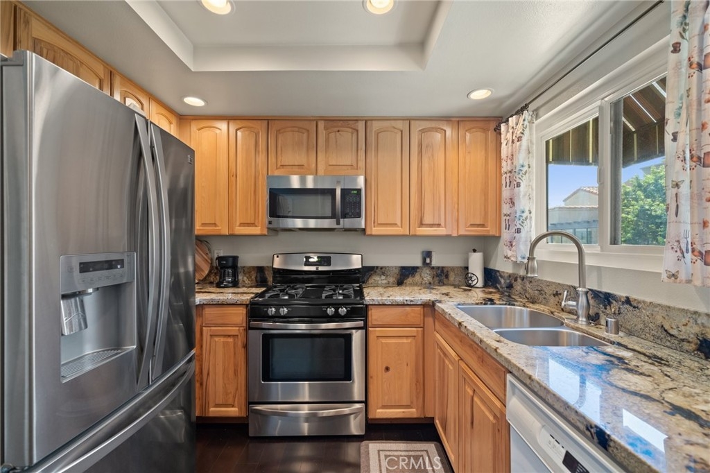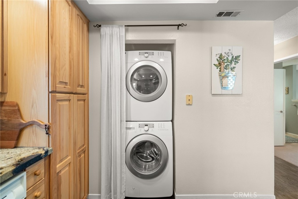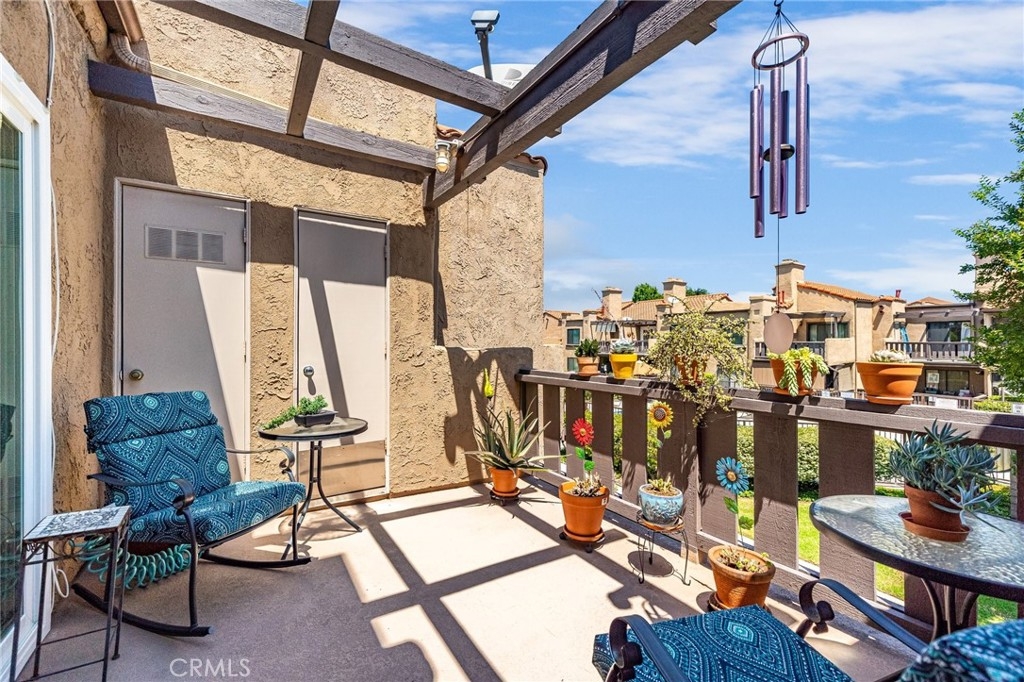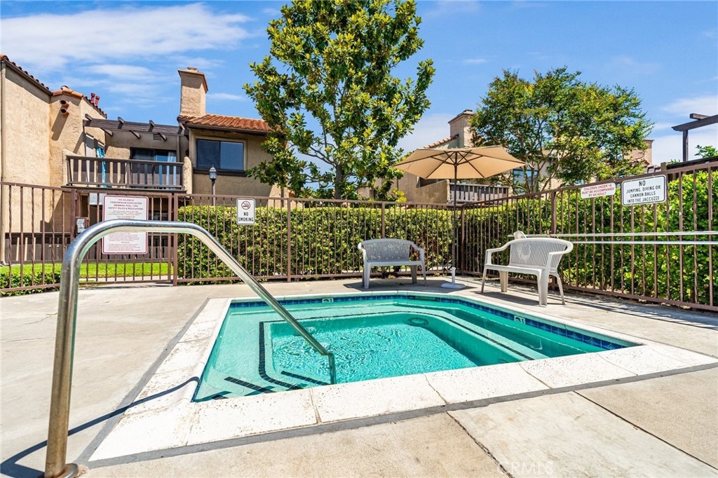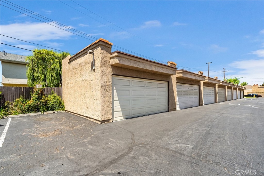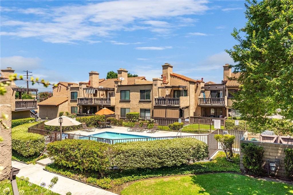 If you're stepping into homeownership for the first time, this upper-level, single-story corner unit presents an excellent opportunity! Nestled within the serene community of Via Valencia, this residence boasts 2 bedrooms, 2 baths, and a 2-car garage, all while enjoying a private placement towards the rear of the complex. Surrounded by lush greenbelt pathways, it overlooks the community's pool and spa area. Upon entering, you'll be greeted by an open layout seamlessly connecting the living and dining spaces. A generously sized, secluded balcony off the living room provides an ideal setting for hosting friends and family. High vaulted ceilings and generous windows contribute to the overall brightness and openness of the interior. The living room's fireplace adds a touch of coziness. Both bedrooms offer ample space and come equipped with mirrored closet doors and built-in organizers. The bathrooms and kitchen feature neutral color schemes, offering a versatile canvas for your personalization. Convenient in-unit laundry facilities house a full-size washer and dryer. A detached 2-car garage is just a stone's throw away and can be easily accessed using a remote. Central A/C and heating systems ensure year-round comfort. The HOA fee covers essential services like water, trash removal, and exterior maintenance. Via Valencia is a smaller community with a total of only 38 units and falls within the highly-regarded Fullerton School District, which includes Beechwood Elementary/Junior High. For those seeking a walkable lifestyle, this home is conveniently situated within walking distance of Downtown Brea, offering a plethora of shopping, dining, and entertainment options. Come explore this place you'll be proud to call HOME!