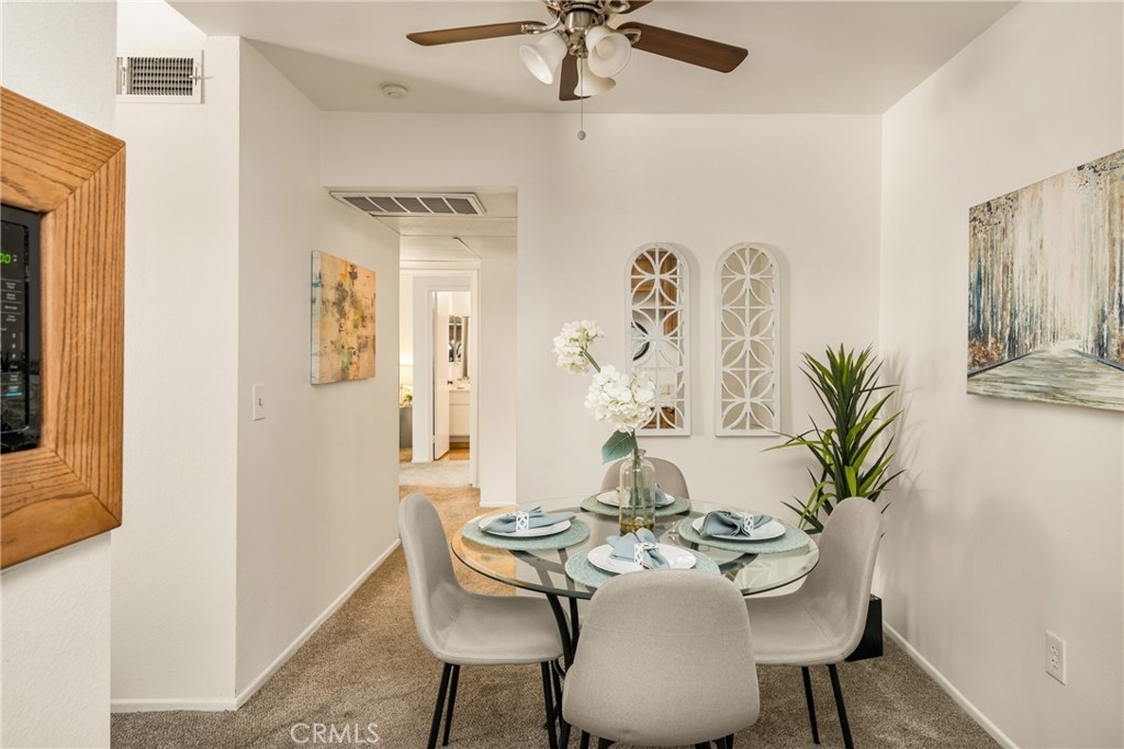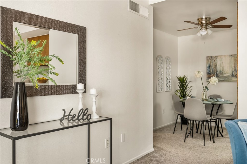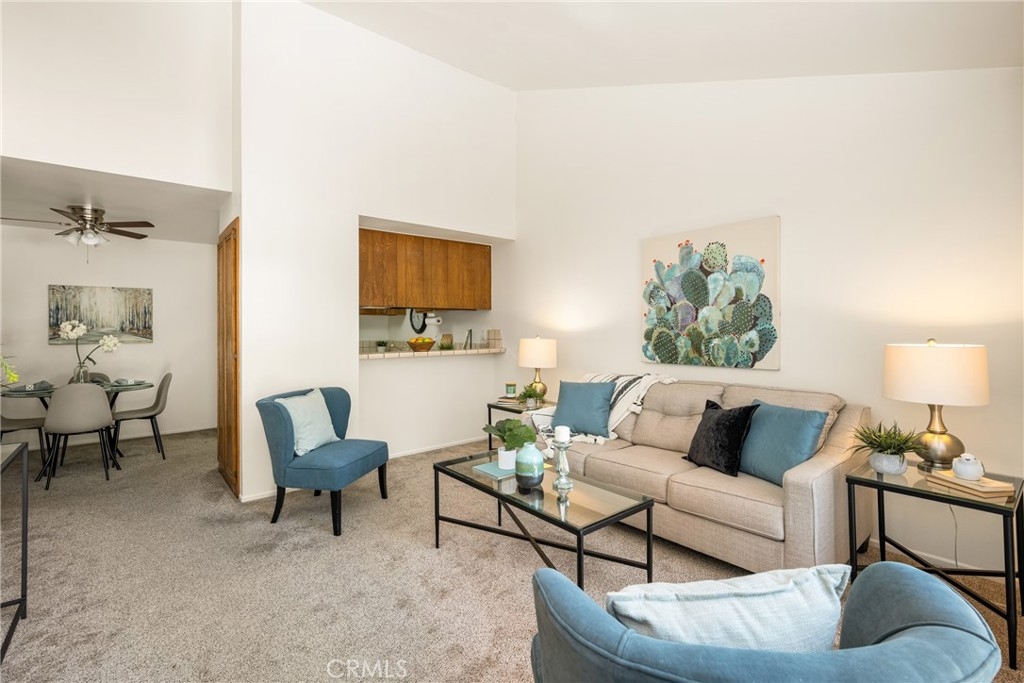 Welcome to this charming 2-bedroom, 2-bath condo located in the gated Park Ridge community! This upper-level unit features a bright and open living room with vaulted ceilings and a seamless flow into the kitchen and dining area—perfect for entertaining. The dining room is accented with a ceiling fan for added comfort. The primary bedroom includes a walk-in closet and an additional closet with mirrored wardrobe doors. Additional highlights include a one-car garage and access to fantastic community amenities: pool, spa, gym, clubhouse, and HOA-covered trash, water, and gas! All this in the highly desirable Troy High School district. Prime location—just across the street from scenic Craig Park and minutes from CSUF, Brea Mall, Birch Hills Golf Course, shopping, dining, and major freeways. Location, location!