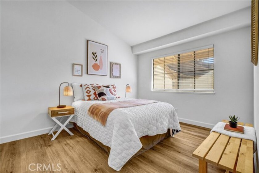 THE PERFECT OPPORTUNITY FOR A FIRST-TIME BUYER OR INVESTMENT PROPERTY IN NORTHWEST FULLERTON! Nestled in the hills of Fullerton’s popular Westside complex—one of the area’s most desirable neighborhoods—this charming home sits across from the beautiful 105-acre Ralph Clark Regional Park, surrounded by lush, mature trees and a peaceful atmosphere. This quiet and well-maintained community offers a relaxing ambiance with beautifully kept grounds cared for by the Association. This desirable end-unit features a comfortable two-story layout with no one above or below. The home offers two generous primary bedrooms, each with its own bathroom. The interior is enhanced by beautiful brand-new vinyl flooring throughout. The stunning remodeled kitchen features black granite countertops, upgraded white shaker cabinets, tray ceiling, and brand-new stainless steel/black appliances, including a 5-burner gas range and dishwasher. A convenient casual dining area, a cozy living room, a downstairs half-bathroom, and handy inside laundry with brand-new washer and dryer (included in the sale) add to the home’s appeal. One of the primary bedrooms offers a vaulted ceiling and mirrored closet doors. One of the bathrooms upstairs has been completely remodeled with a modern walk-in shower. Additional upgrades include fresh interior paint, recessed lighting, ceiling fans, blinds, and crown molding. Numerous windows fill the home with natural light, creating a bright and airy atmosphere. Central air conditioning and heating ensure year-round comfort. Just steps away are two detached carports plus plenty of guest parking. A large sliding door leads to an extra-large, fully fenced front patio—perfect for pets, gardening, barbecues, or enjoying your morning coffee. Enjoy the community amenities, including a pool, spa, and playgrounds. Association dues ($365/month) cover water, trash, fire insurance, pool, spa, playgrounds, and all exterior maintenance. Conveniently located near shopping, restaurants, grocery markets, parks, and golf courses. A 10+ property!
