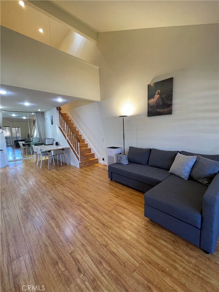 BEAUTIFUL! GREAT LOCATION IN THE HIGHLY DESIRABLE "WESTSIDE" COMMUNITY IN FULLERTON. THIS PEACEFUL UPPER UNIT PROVIDES OPEN FLOOR PLAN WITH VAULTED CEILINGS. 2 BEDROOMS - ONE LOFT STYLE WITH 1.5 BATHROOMS. SEPARATE DINING AREA, OPEN LIVING ROOM WITH PRIVATE COZY BALCONY LOCATED OFF THE LIVING ROOM. LAMINATED WOOD FLOORING W/GRANITE COUNTERTOPS, INSIDE LAUNDRY. A ASSIGNED PARKING AND PLENTY OF GUEST PARKING NEARBY. ASSOCIATION DUES INCLUDE WATER, TRASH, AND ALL OUTSIDE MAINTENANCE. COMMUNITY POOL, SPA, AND PLAYGROUND. A MUST SEE!
