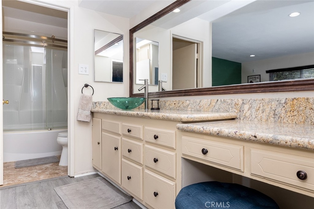 1 Bedroom/ 1 Bathroom on second story end unit so you only have neighbors on one side of you. Condo was completely remodeled three years ago. Central air conditioning system was completely replaced one year ago. Water heater was replaced 6 months ago. New granite countertops, new kitchen sink and faucet. Sink cabinet was recently replaced and is brand new. Recess lighting through out the home. Carpet has memory foam padding for extra comfort. All windows were replaced with double pane sound resistant windows three years ago. New electrical panel installed four years ago. Popcorn ceiling removed and modern texture applied three years ago. New vinyl plank flooring installed one year ago. Light dimmers installed on most light switches. New high power toilet installed three years ago. New European vinyl tub/shower installed three years ago. Faux wood blinds are three years old and in good condition. Will remain with the condo at sale. Quiet and calm neighborhood. Unit is located in the A building which is the nicest of the four buildings. Community is gated and centrally located walking distance to Cal State Fullerton. Close to 91/57/5 fwy, restaurants, gas station, bars, grocery stores, post office, coffee shops and public transportation. Parking is one covered carport spot and one permitted uncovered spot plus plenty of street parking. Amenities include: swimming pool and jacuzzi, laundry room on every floor of the building, gym with sauna, library, BBQ area, garden and fountain area, on site maintenance, elevators, spacious community entry area with couches and coffee table. All stainless steel appliances are three years old and in good working condition. Available to be purchased with the condo for ease of move in.