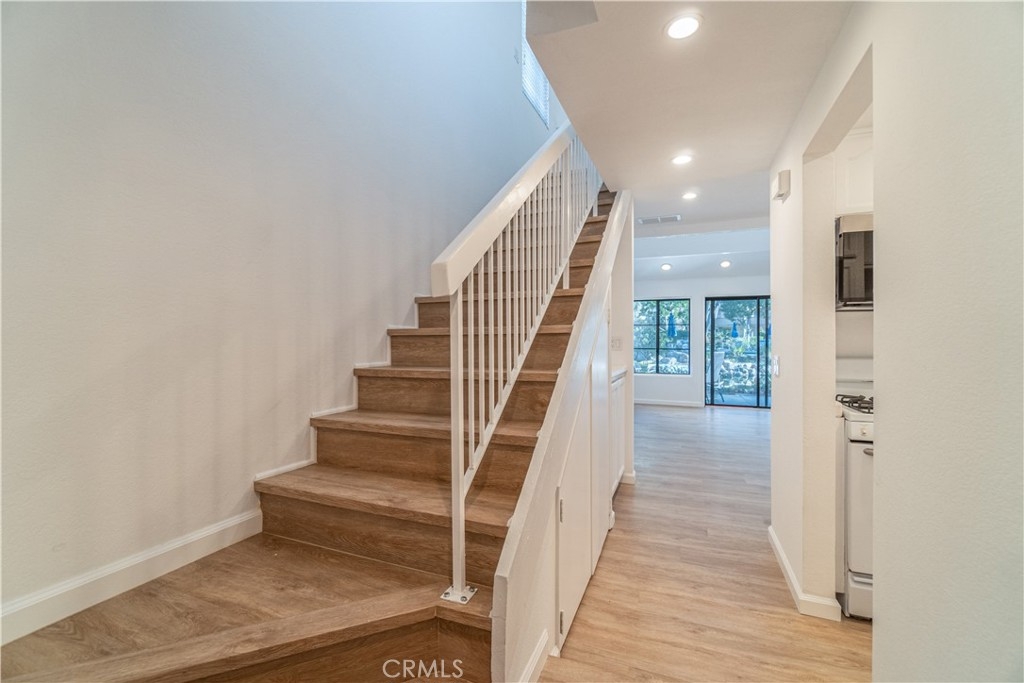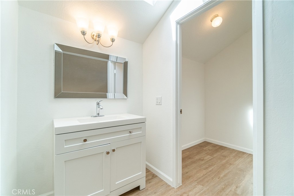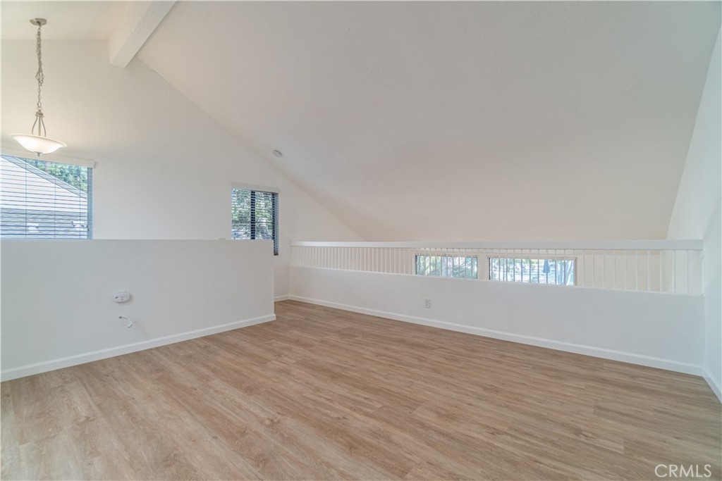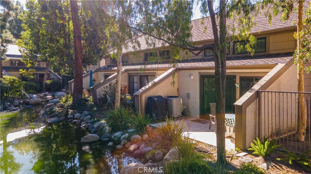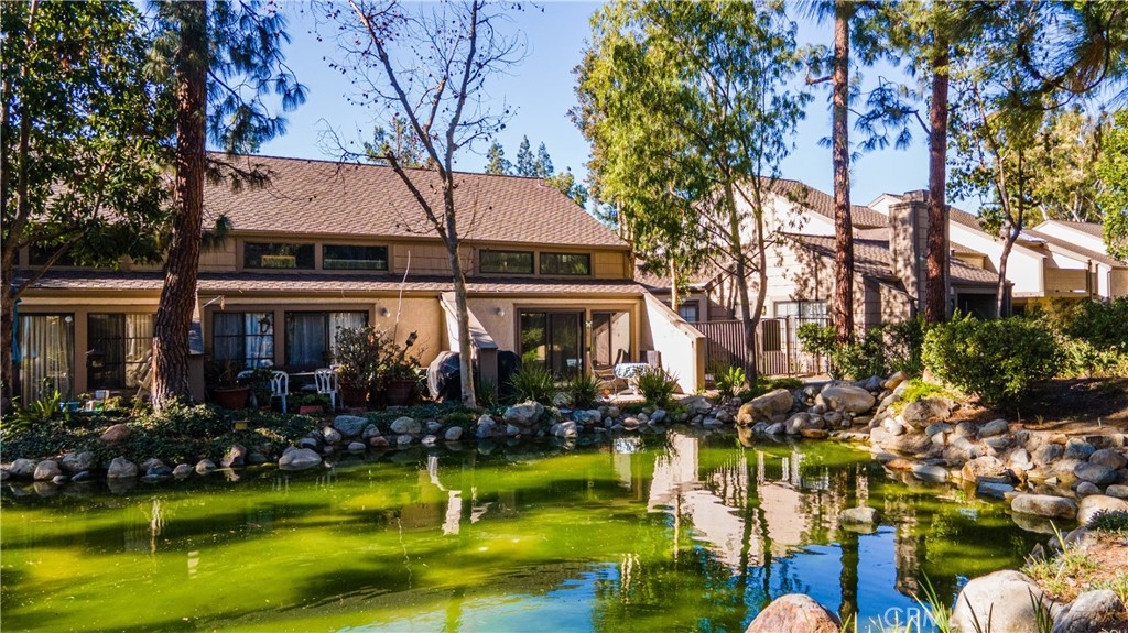 Welcome to this beautiful move in ready loft style design 1 bedroom/ 1 bath spacious condo located in the idyllic Hidden Lakes Community. Set towards the middle of the community, 523 Blue Water Lane is an end unit close to the pool area. The entry flows into an airy floorplan that opens to a great room with plenty of windows and natural light. New luxury vinyl flooring throughout. The kitchen is open to the main living area and has a counter-height breakfast bar that's perfect for entertaining or extra seating. Plumbing is present for possible addition of a downstairs wet bar or bathroom. This home features a vaulted ceiling. You can walk outside on the private patio overlooking the peaceful stream that meanders through the complex. The kitchen includes a gas stove and plenty of storage. Upstairs features the oversized loft bedroom, walk in closet and beautifully upgraded bathroom. The garage has plenty of storage, including a built-in storage area with a pull-down door access. The garage also includes a washer, dryer and direct access to the unit. This community has plenty of parking for family and friends while maintaining the quiet peaceful ambience the Hidden Lakes Community provides. The Hidden Lakes community is close to shopping, freeways, parks, dining, nightlife, as well as close to the Fullerton Loop recreation trails, Coyote Hills Golf Course, Hillcrest Park, schools, grocery store options, and so much more.