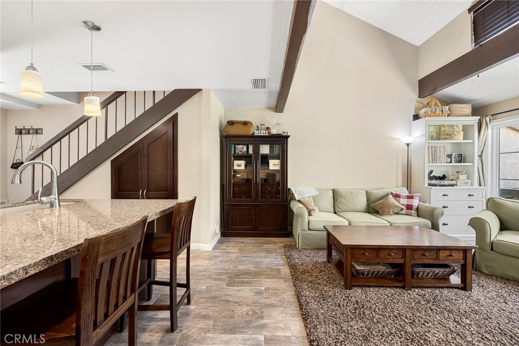 This lovely home has been remodeled to make the most of every square inch with a spacious open living area, custom built cabinet under stairway, loads of storage, private patio w/gas line for barbecue. There is an oversize garage with laundry and easy access to attic storage. Bonus - everything here is new or nearly new, at least within the last five years. Including; Dual pane windows and slider, tile flooring, silestone counters in kitchen and granite counters in bathroom, appliances, air conditioner, cabinets, carpet… Don’t miss this rare opportunity, it’s been more than a year since a one bedroom unit has been available in this community. This is a Gorgeous end unit in a great Fullerton location, minutes from active downtown Fullerton and the Birch Street Promenade in Brea not to mention the many colleges/universities, parks, train station, freeways…