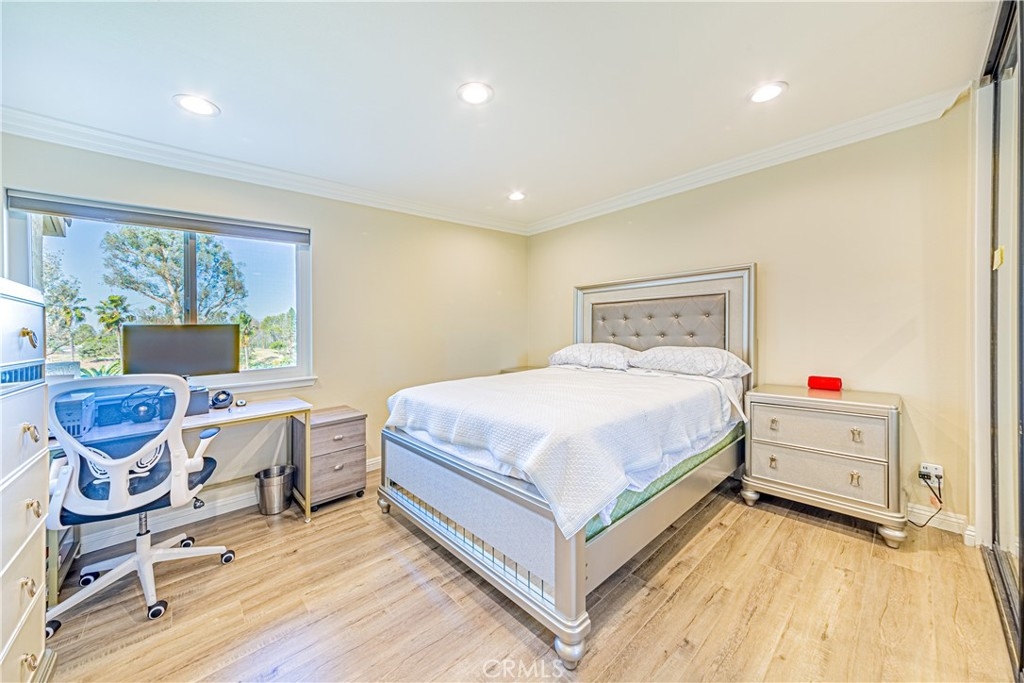 Welcome to this beautifully upgraded residence in the highly sought-after Fairway Village community. This home offers a serene retreat, perfectly situated away from street noise, providing breathtaking views of the golf course, mountains, and expansive green belt. As you enter, you'll find a thoughtfully designed layout featuring a bedroom and bath on the entry-level, making it ideal for guests or easy living. The interior is bathed in natural light, thanks to numerous skylights and large windows that enhance the open feel of the space. The living room is a highlight of the home, boasting a floor-to-ceiling fireplace, soaring high ceilings, and a glass slider that opens to a charming patio—perfect for entertaining or enjoying quiet moments. Upstairs, you'll discover a spacious secondary bedroom with an adjacent full bath. The master suite is a true sanctuary, offering <<a private balcony with >> stunning views of the lush green belt, golf course, and mountains beyond. This home has been meticulously maintained and cared for over the years, ensuring it is move-in ready for its next owner. The Fairway Village community is unparalleled, featuring 50 acres of beautifully landscaped grounds that include two inviting pools and spas, <<two lighted tennis courts and a multipurpose/basketball court >>, a clubhouse, common RV parking, and a 24/7 manned entrance gate. Conveniently located near St. Jude Hospital and Medical Center, shopping centers, dining options, colleges, universities, and the popular Beechwood School (K-8), this residence truly offers the best of both worlds—an island of tranquility in the city. This is more than just a house; it’s a place you can call home for many years to come. Don’t miss your chance to experience the lifestyle this exceptional property has to offer!?”