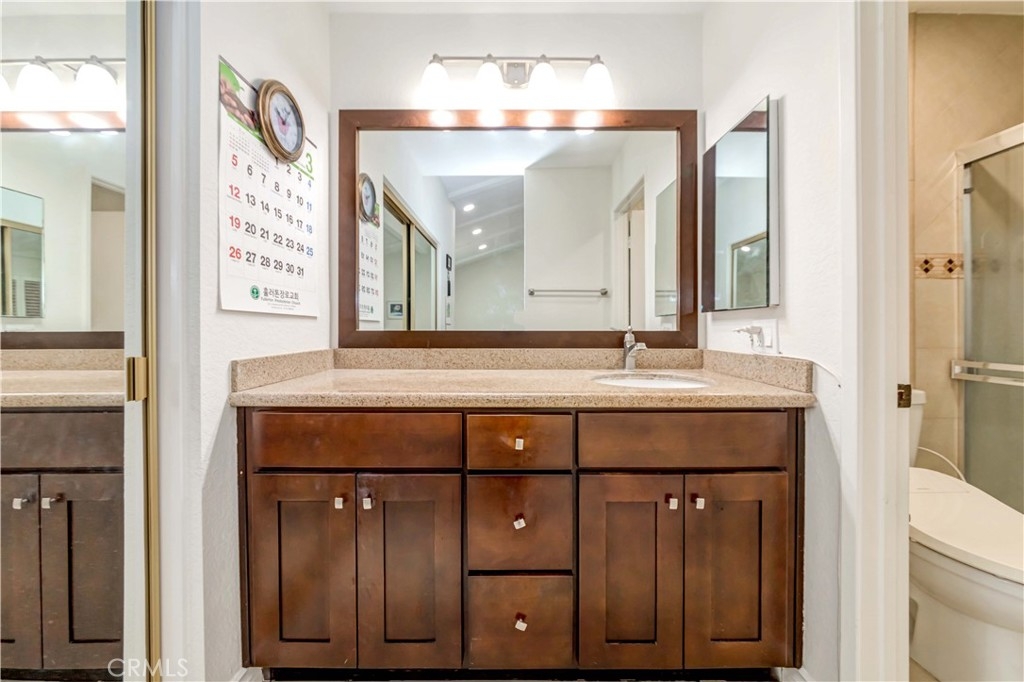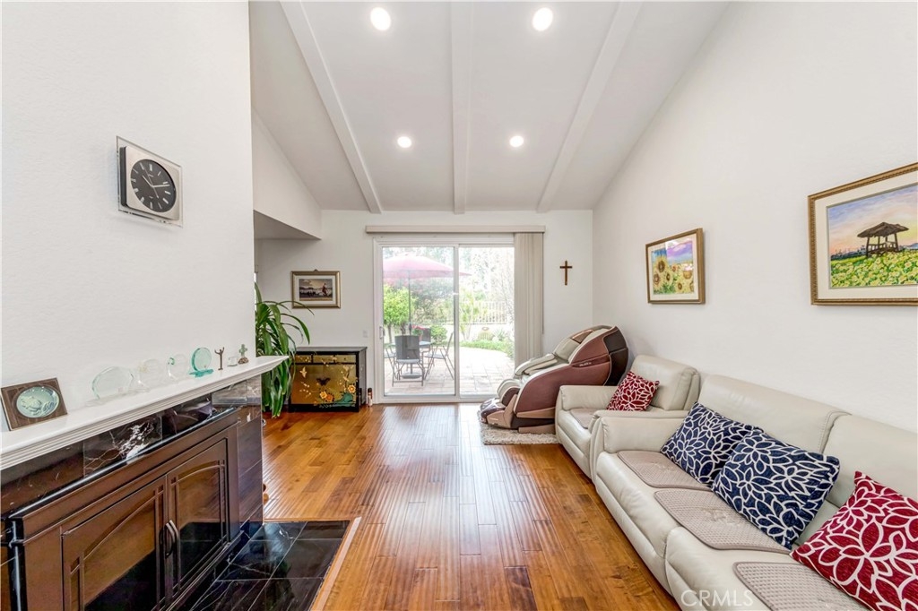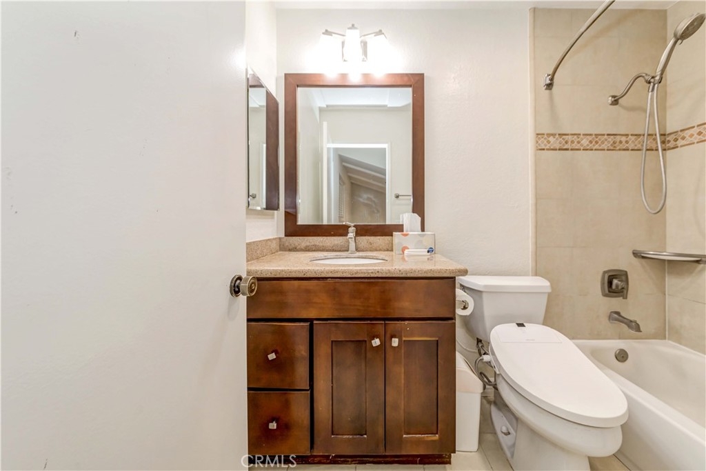 One of the BEST LOCATIONS in the highly desirable and popular "Malvern Creek" community. Surrounded by lush mature trees and greenbelts. 2 bedrooms and 2.5 bathrooms with a living space of 1,186 sift is situated on the inner side of the community, away from the streets. Very quiet with a clear green view, upon entering you will find a perfect floor plan with abundance of natural sunlight. Vaulted ceilings, warm and inviting living room with cozy brick fireplace. Downstairs half bathroom, stunning wood flooring on the first floor, carpet floor on the 2nd floor. Nicely open kitchen with granite countertops, newer stainless steel appliances. Huge master suite with vaulted ceiling, walk-in shower and spacious walk-in closet with mirrored closet doors. The secondary bedroom overlooks a greenbelt and beautiful woodsy landscape. The recessed lights are on the 1st & 2nd floor. All windows including the patio door were reinstalled, Big sliding door on the first floor leading to a relaxing private large patio for gardening, This patio garden is one of the biggest gardens in this complex. Enjoying morning coffee, pets, perfect for outdoor entertaining. Direct access to the 2 car garage plus driveway and plenty of guest parking nearby. Don’t forget that this community is within Robert G. Fisler Elementary and Sunny Hills High School district. It is move-in ready, so come by quickly since it won’t last too long on the market. Beautiful grounds, very well kept by the Association. Property sits across the Amerige Heights Shopping Center.
