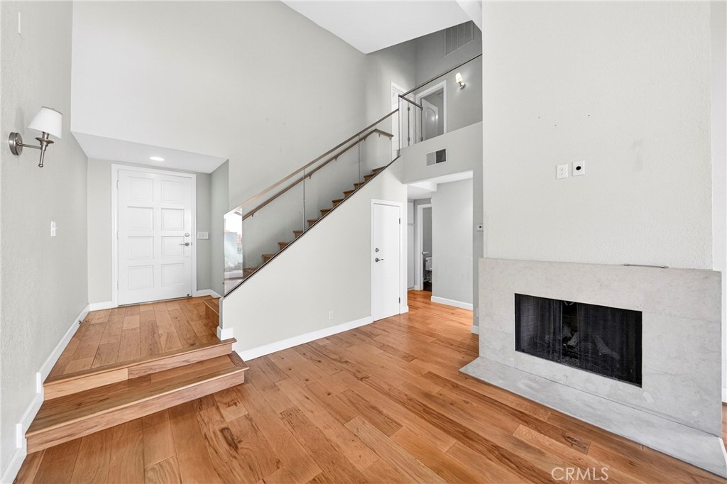 A beautiful and cozy updated Malvern Creek community two-level condo in Fullerton. It is an End-Unit with 2 car attached garage and plenty of guest parking. Hardwood flooring throughout the house. The 2nd floor has a large Master bedroom with a ceiling fan & light, a walk-in closet, and a full bath.2nd bedroom has ceiling light+ full bath. Downstairs has a fireplace in the living room, a 1/2 bath, a patio outside of the living room, and a neat and updated clean kitchen, with extra lights on the ceiling. Laundry hookups in the garage. Excellent school district, with Fisher Elementary and Sunny Hills High. Very conveniently located close to supermarkets, shopping centers, dining options, parks, and more. Don't miss this opportunity to make this beautiful home yours!!!